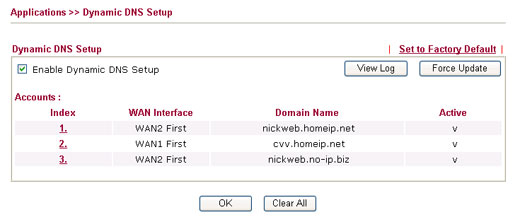 นอกจาก Vigor 2910 จะรองรับ DDNS ได้ถึง 3 ชื่อแล้ว ยังสามารถกำหนด DDNS กับขา WAN แต่ละขาได้ด้วย ดังนั้นเมื่อ Wan ใด WAN หนึ่งล่ม ก็สามารถเชื่อมต่อเข้ามาที่ Router ผ่าน WAN ที่เหลือได้ จึงหมดปัญหาเรื่องการ Remote Support จากภายนอก